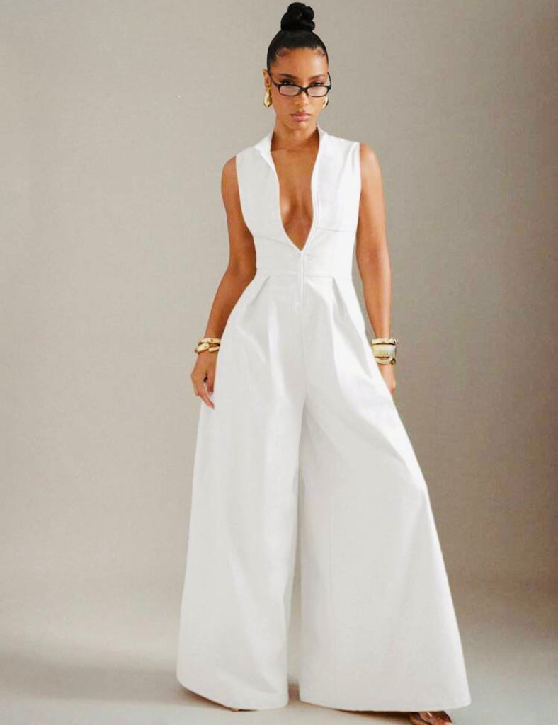 Extreme wide leg zip attachment jumpsuit.